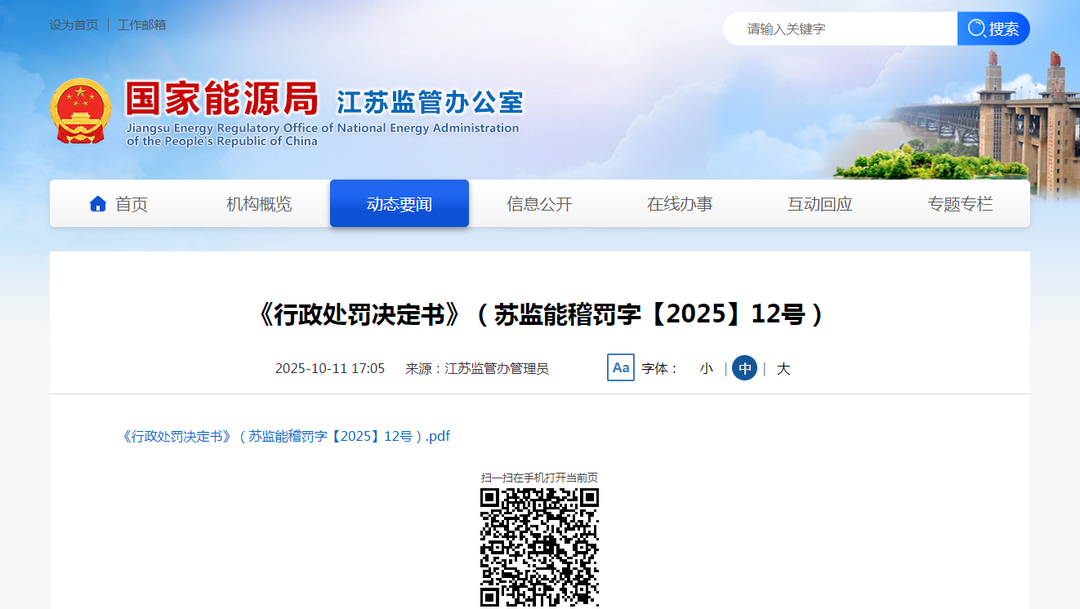 齐鲁晚报·齐鲁壹点记者于国家能源局江苏监管办公室政府信息公开栏获悉配资在线配资炒股,10月11日,南京电研电力自动化股份有限公司收江苏能源监管办罚单,处罚决定书文号:苏监能稽罚字(2025)12号。